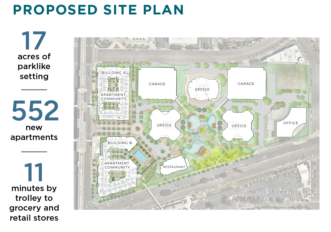 The Irvine Company’s plan will redevelop low-rise office buildings on the west side of The Plaza site into a new apartment community. Located on Genesee Avenue on the corners of Executive Drive (Building A) and La Jolla Drive (Building B), the community will consist of 552 apartments. Ranging from studios to three bedrooms, the apartment homes will appeal to students, tech workers, professionals and families.